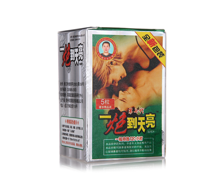 【簡介說明】:全新推出新包裝「一炮到天亮 第七代加強版」,2003年申請專利,該產品能有效激活腎上腺PDA生成因子,稀釋補充精液,完成多次射精並達到多次高潮。房事後能迅速生成補充精子,不會因精竭而產生疲勞感和影響腎功能,效力可持續120小時